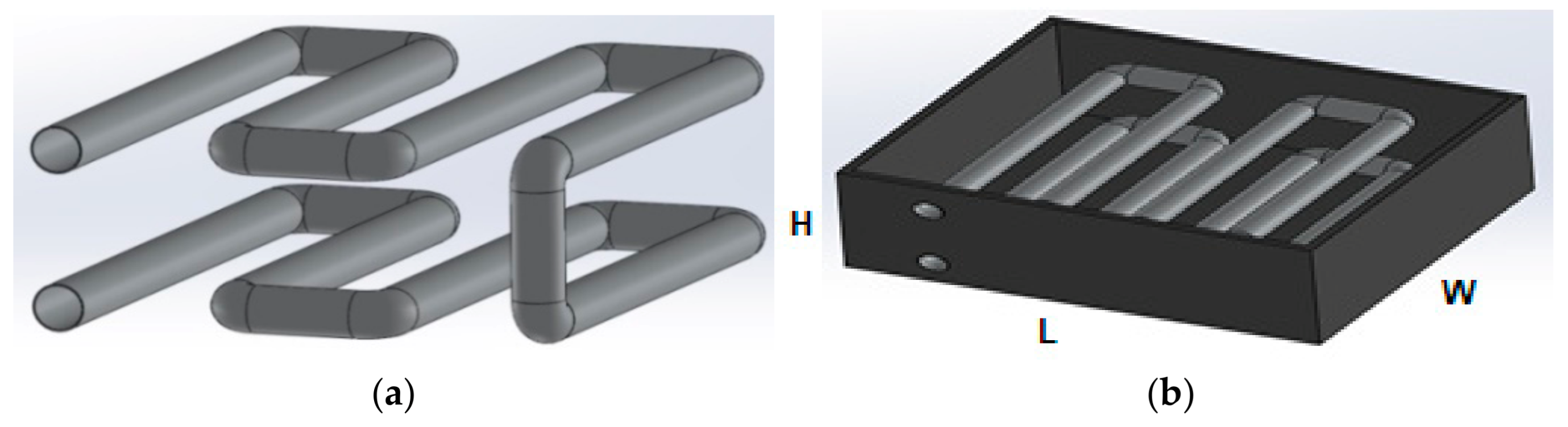 - Hosseini, H.; Ashrafi, M.M.A.; Asadi, Z.; Ganji, D.D. Development in Household Water Heaters by Replacing the Shell and Tube Heat Exchangers by Inclined Flat Ones Having Rectangular Fins. Case Stud. Therm. Eng. 2021, 28, 101490. [Google Scholar] [CrossRef]