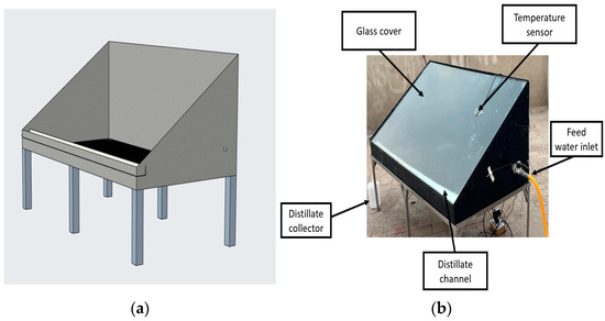 The solar still CAD model and experimental setup are shown in Figure 3.