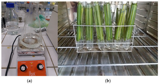 (a) NaOH solution preparation; (b) Alfa fibers stems alkaline treatment.