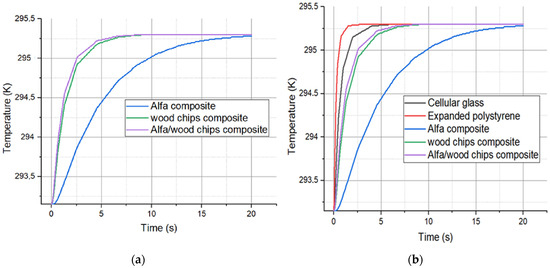 (a) Simulation of the Dynamic Thermal Response of Alfa and Wood Materials; (b) Comparison of Simulated Dynamic Thermal Responses Across Materials.