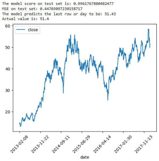 As shown in Table 1, the tree-based models, particularly Random Forest, XGBoost, and KNN Regressor, achieved extremely high accuracy, with R2 scores approaching 0.998. XGBoost demonstrated the best overall performance, with the lowest Mean Squared Error (MSE) of 0.1992 and a last-day prediction very close to the actual closing price. The KNN model also performed comparably, showing that with proper hyperparameter tuning, it can match the performance of more complex ensemble methods. On the other hand, the LSTM neural network, while effective, showed a lower R2 score of 0.90991 and a higher MSE of 2.0270. This is understandable, given that LSTM networks generally require more extensive tuning, larger datasets, and longer training times to outperform traditional machine learning models on structured, non-sequential data such as stock closing prices. The Decision Tree Regressor performed well but slightly overfit the training data, as evidenced by its comparatively higher MSE. Despite this, it maintained a strong predictive performance for the test set. Overall, the results highlight the effectiveness of tree-based ensemble methods in financial market prediction when using historical price data without feature engineering. Deep learning methods like LSTM may require further enhancements, such as larger datasets or hybrid models, to outperform traditional models in this specific context.