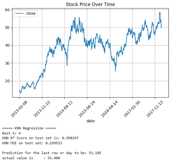 With R2 values close to 0.998 and the lowest Mean Squared Errors (MSE), the results show that tree-based ensemble models—in particular, XGBoost and Random Forest—performed better. When trained on unprocessed historical data, these models showed excellent predictive potential and were quite successful even without the inclusion of engineered technical indicators. Under ideal parameter choices, KNN’s performance closely matched that of the ensemble models, demonstrating encouraging results as well.