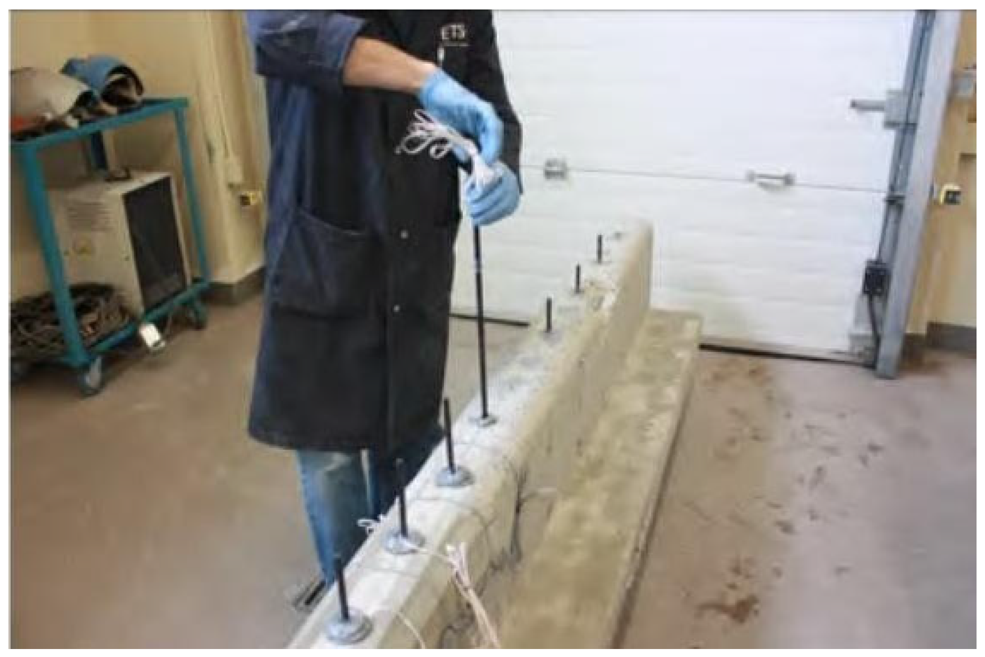 - Merdas, A.; Fiorio, B.; Chikh, N.E. Adhérence de joncs et plats composites mis en place dans le béton selon la méthode NSM. In Proceedings of the 29th University Meeting of Civil Engineering, Tlemcen, Algeria, 29–31 May 2011. [Google Scholar]