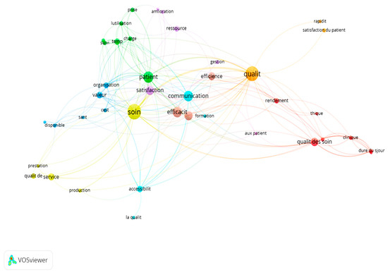 - Yellow Cluster: Emphasizes care quality and service provision.