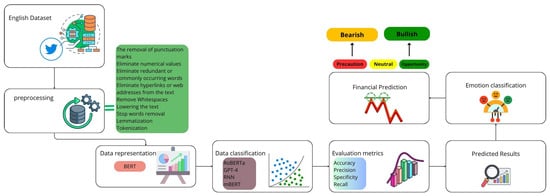 Due to its importance to investors, policymakers, and economists, stock price forecasting has become a major financial study topic. Predicting market behavior is difficult and time-consuming, despite its rising importance. Financial markets’ inherent volatility and stochasticity make forecasting models unreliable [1]. Machine learning has been used to address these issues, but stock market volatility still makes predictions inaccurate [2]. Market predictability has been shaped by traditional financial theories like the EMH and Random Walk Theory. According to the EMH, stock prices instantly reflect all publicly available information, making past data useless for prediction [3]. The Random Walk Theory states that price variations are unforeseeable based on historical patterns because they follow a random route. These theories stress that exogenous variables like financial news and macroeconomic developments typically impact stock price fluctuations more than historical trends, especially during market turmoil. Under some situations, past stock data patterns can produce useful projections, according to empirical study [4]. When applied to well-structured information, time-series models like the Autoregressive Integrated Moving Average (ARIMA) can improve short-term forecasting. ARIMA-based models have shown significant prediction accuracy in case studies of the Indian stock market [5]. When data is tainted with noise or unstructured material, such as financial news or social media sentiments, their performance drops considerably [6]. Big data and artificial intelligence have revived interest in text mining and deep learning for stock market prediction. Deep neural networks excel in extracting complicated characteristics from various data sources, improving forecasting accuracy. Although deep learning architectures have improved [7], many cannot adapt to the complex and turbulent financial markets. Research continues to adapt model designs to rapid market swings and exogenous shocks. Behavioral finance highlights the significant impact of investors’ emotions and psychological patterns on financial decision-making [8]. Deng et al. [9] conducted a recent investigation into the potential of utilizing sentiment from retail, institutional, and foreign investors to predict changes in the Shanghai Stock Exchange Index. The growing influence of social media on investor sentiment has rendered such data a valuable component for predictive stock market models [10,11]. The proliferation of online platforms has established textual content as a significant medium for expressing investor emotions, which often influence market dynamics [12]. Extracting meaningful insights from vast and unstructured textual data continues to pose significant challenges. In response, analytical techniques, including sentiment analysis (SA) [4], natural language processing (NLP) [13], and opinion mining, have become increasingly important for interpreting investor sentiment and improving forecasting accuracy [14]. Even though a lot of research has been done in this area, many existing models still have big prediction mistakes and are becoming more complicated, which has led researchers to ask for better, clearer, and more useful solutions for stakeholders. This study uses cognitive computing methods like large language models (LLMs) [15,16] and data augmentation [17,18] to improve stock price prediction model accuracy and interpretability. Traditional modeling methods struggle to capture subtle sentiment and contextual clues in financial text data from news, analyst reports, and social media due to its volume and complexity. GPT-4 and BERT-based LLMs can derive predictive insights from unstructured financial narratives because of their enhanced language understanding. Data augmentation strategies synthetically extend training datasets, reduce class imbalance, and improve model generalization, especially in volatile or low-signal situations. This dual strategy addresses sentiment-driven forecasting restrictions in a cost-effective, scalable, and efficient manner. Paper Structure: The Section 2 examines cognitive computing, LLM, and basic financial prediction research. The Section 3 describes the data sources (stock market records, financial news, and social media), LLM architectures, and augmentation methods. Empirical observations comparing our model to traditional baselines are presented in the Section 4. In the Section 5, the study’s main findings and future research areas, such as multimodal data and real-time learning frameworks, are discussed.