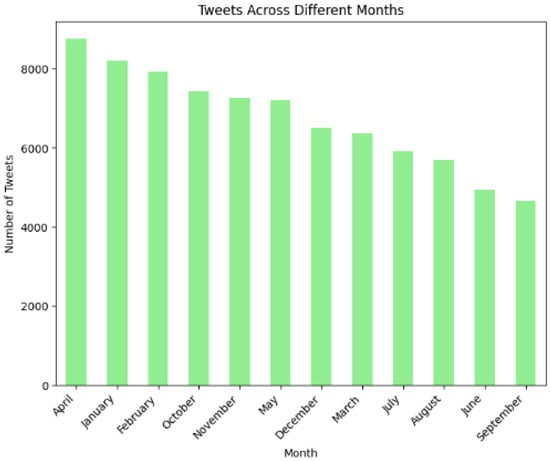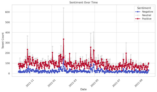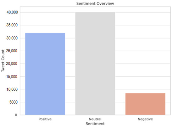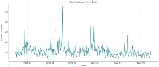 In this study, we used The Stock Tweets for Sentiment Analysis and Prediction dataset on Kaggle [26], which provides a detailed analysis of social media sentiment and stock market movements. As shown in Figure 3, Figure 4, Figure 5 and Figure 6, it includes almost 80,000 tweets on Yahoo Finance’s top 25 stock tickers from 30 September 2021, to 30 September 2022.