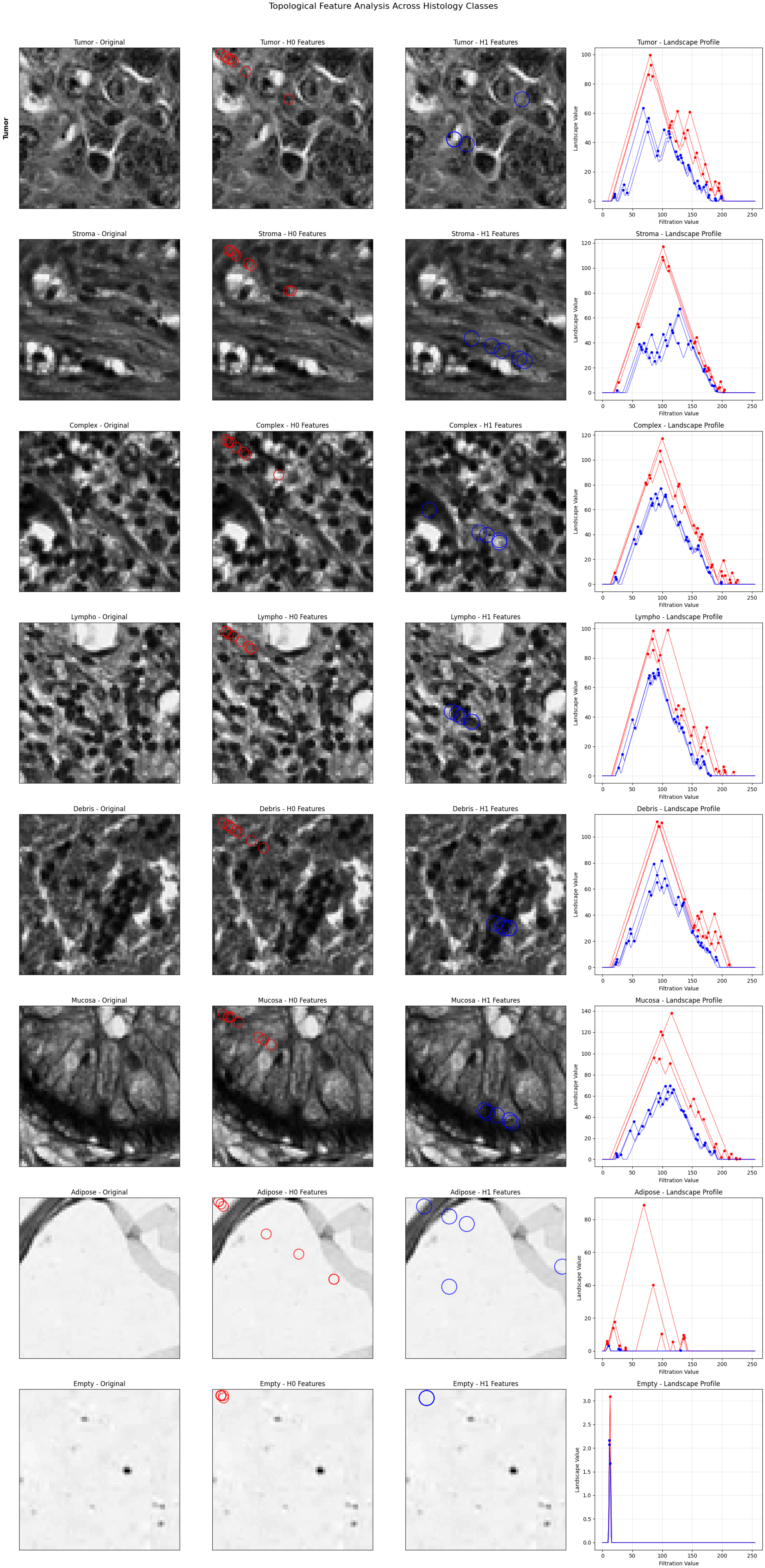 Feature-Biology Mapping: Persistence landscapes directly correspond to histological structures (e.g., quantifies tissue fragmentation, captures glandular cavities), bridging the divide between abstract features and diagnostic standards.
