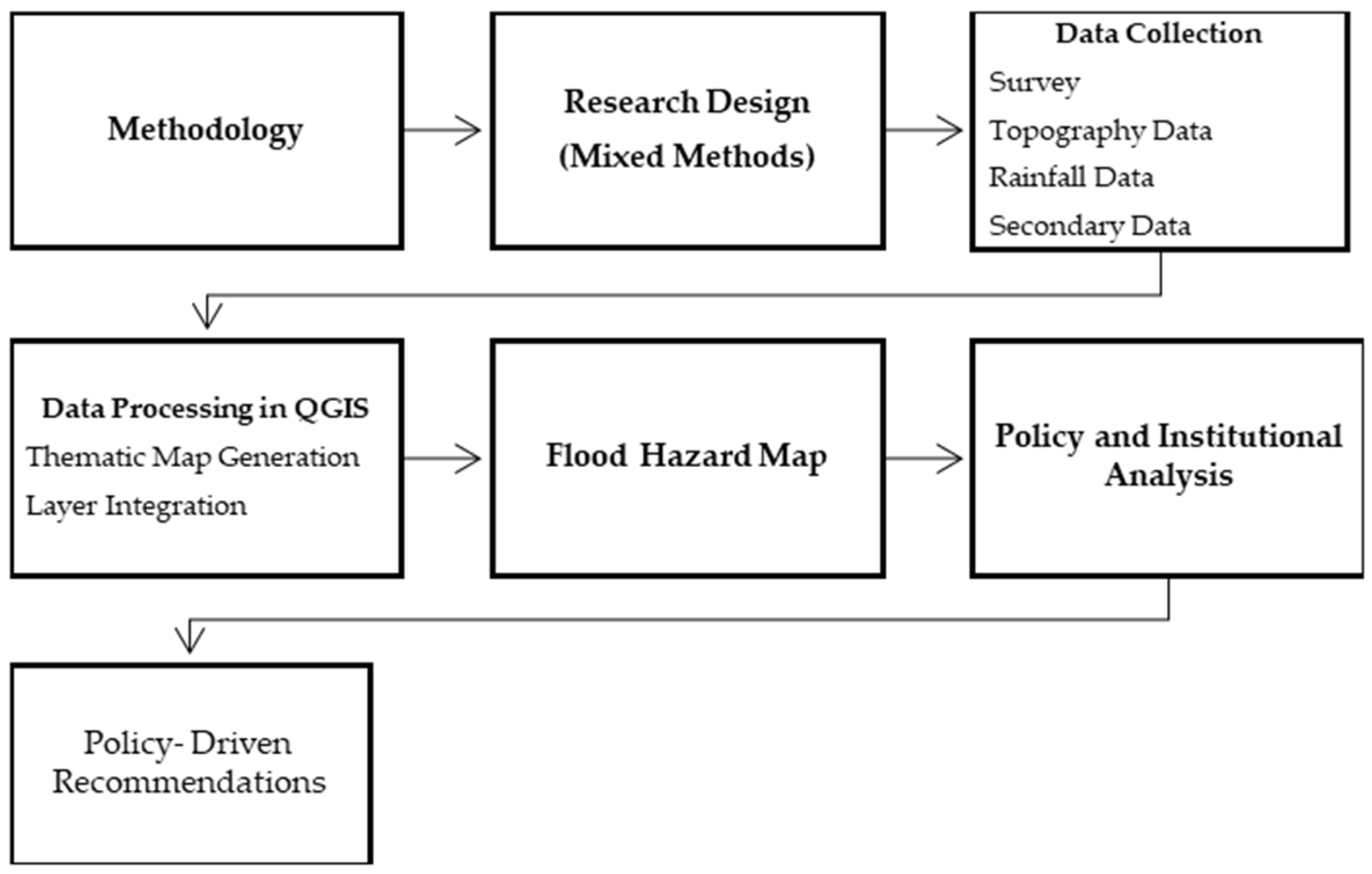This study employed a mixed-methods research design to comprehensively assess flood risk in Turkey. The methodology integrates spatial data analysis, institutional review, and expert consultation to provide a multilayered understanding of climate-related flood hazards (see