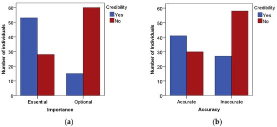 Graphical representation of respondents’ perceptions of credibility: (a) importance of advertising Information; (b) accuracy of advertising information.
