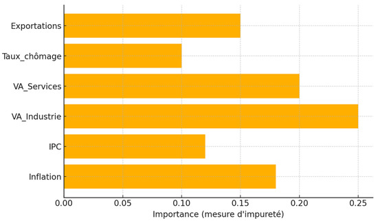 The empirical results reveal that the Random Forest model offers the most robust predictive performance, outperforming conventional approaches in terms of both accuracy (RMSE, MAE, MAPE) and responsiveness to shocks. This conclusion is in line with findings established in recent studies applied to other emerging economies (see, for example, [16,17], where machine learning methods have proved particularly effective in incorporating non-linearities, threshold effects and cross-variable interactions.