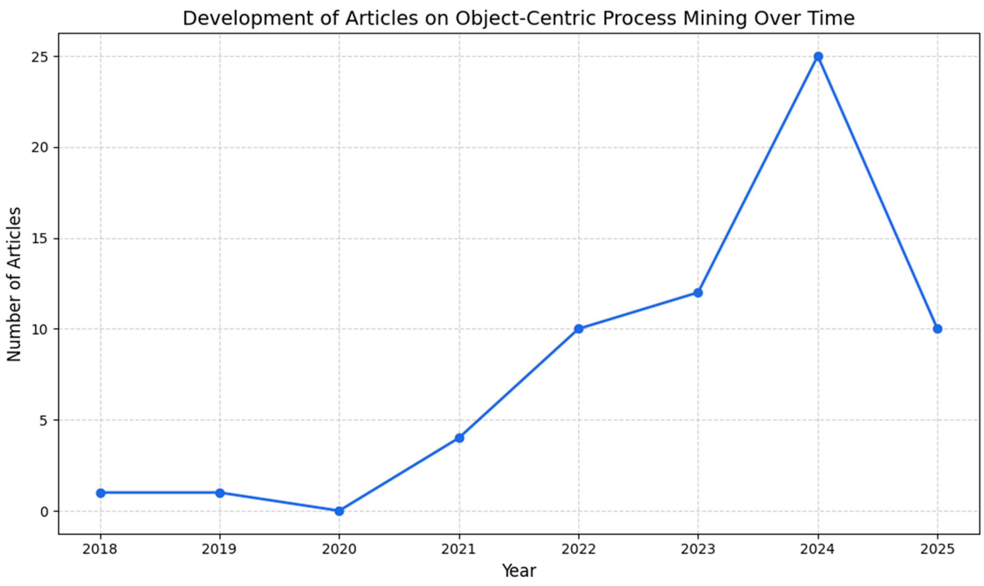 - RQ1: How has object-centric process mining (OC-PM) evolved over time in terms of concepts, methodologies, and practical applications?