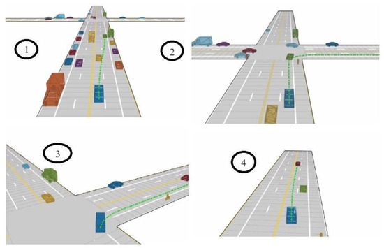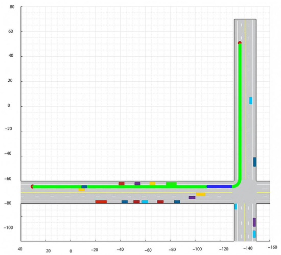 In addition to those results, extensive simulations in different urban environments were used to evaluate the effectiveness of the trajectory planning system. The results of the simulation prove that this trajectory planning system can be effective in extremely dynamic urban environments where the obstacles themselves are in motion. The simulations were performed in MATLAB (version R2022a), allowing real-time modeling and visual output of vehicle movement over a dynamic urban landscape. In all the simulations with moving obstacles (pedestrians and moving vehicles), the system, having been informed of the necessity, came up with new paths for the vehicle to avoid any potential collision. One of the simulations includes an intersection with pedestrians, and the vehicle slows down. In another simulation, the vehicle in front applies brakes, and then the trajectory of the vehicle is adjusted. The table below (Table 1) gives a summary of probability of collisions, reaction times, and what was performed under different conditions: