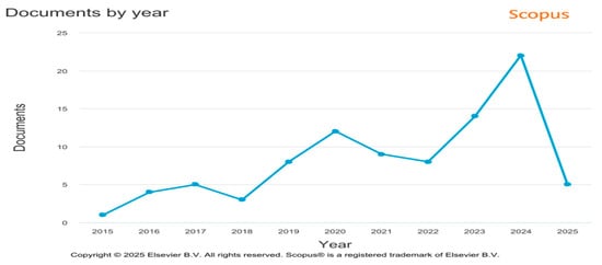 Figure 1 illustrates the evolution of publications on this subject from 2015 to 2025. The ascending trend in document counts over this period reflects a growing academic and professional interest in the topic, suggesting its increasing relevance in the field.