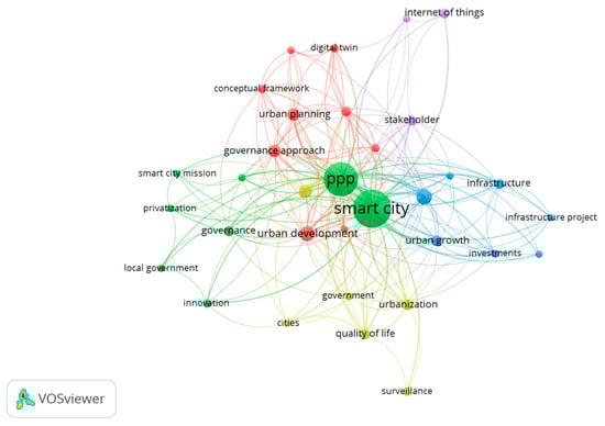 Co-occurrence of keywords of articles linking smart cities and PPP projects.