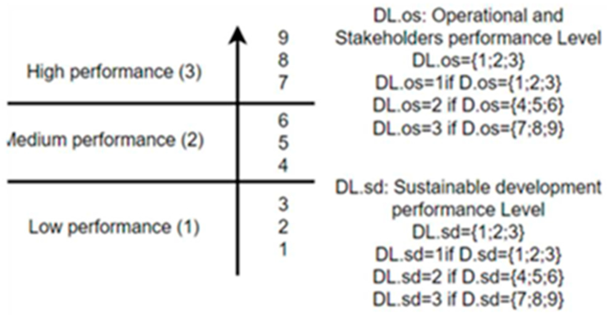 - Operational and Stakeholder Indicator (D.os): Calculated as the lowest value between the operational and stakeholder dimensions.