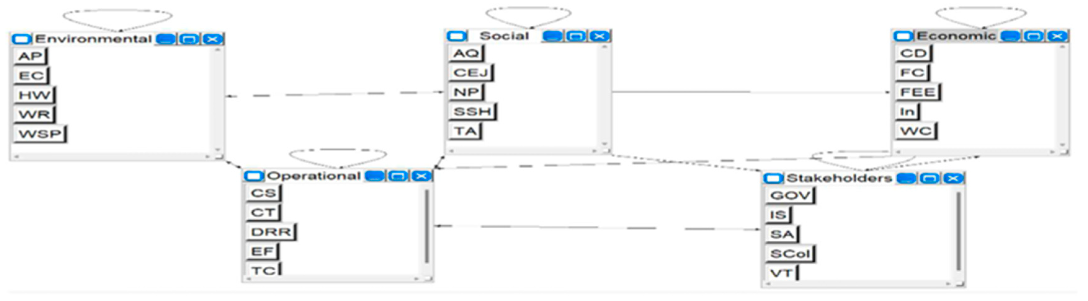 - Sustainable Development Indicator (D.sd): This value is determined by selecting the minimum score from the economic, environmental, and social dimensions.