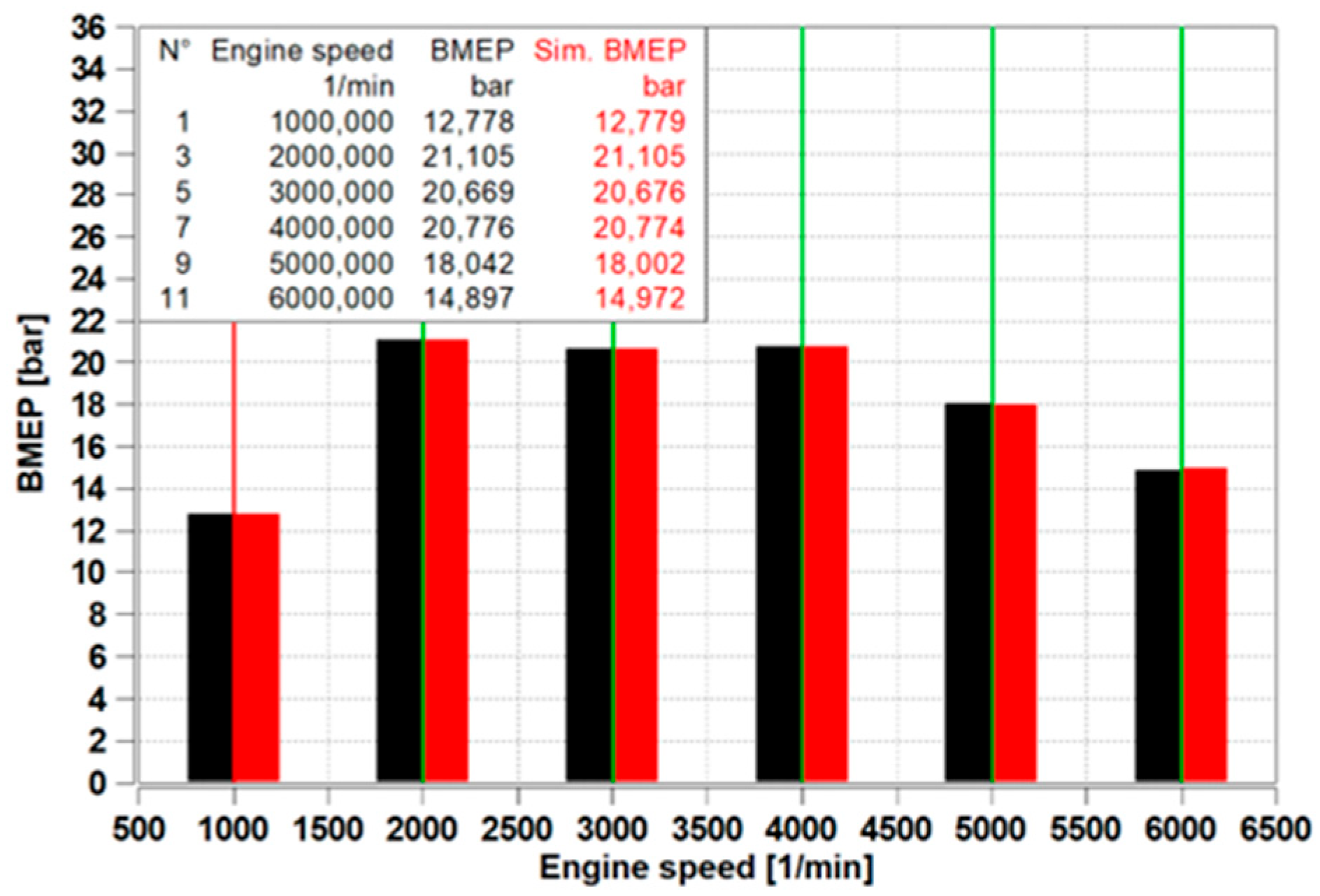 Due to the close interrelation of the parameters, the average deviation between simulation and measurement will be calculated by treating BMEP, power, and torque as single combined data.