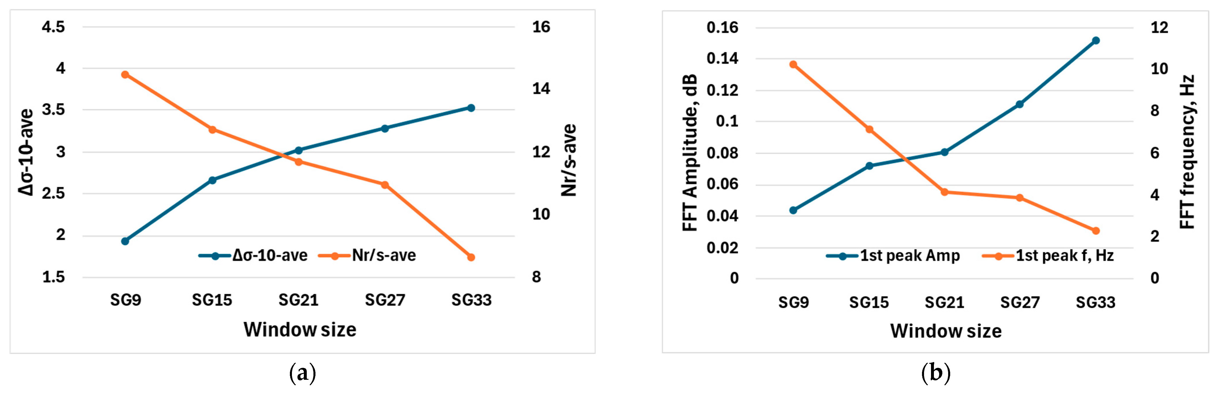 3.1.2. The Effect of Window Size on the Numerical Characteristics of Serrations