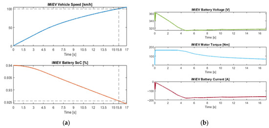 With regard to the acceleration test, the i-MiEV requires 15.6 s to complete the task [17]. It is important to note that the figures demonstrate a realistic electric consumption profile.