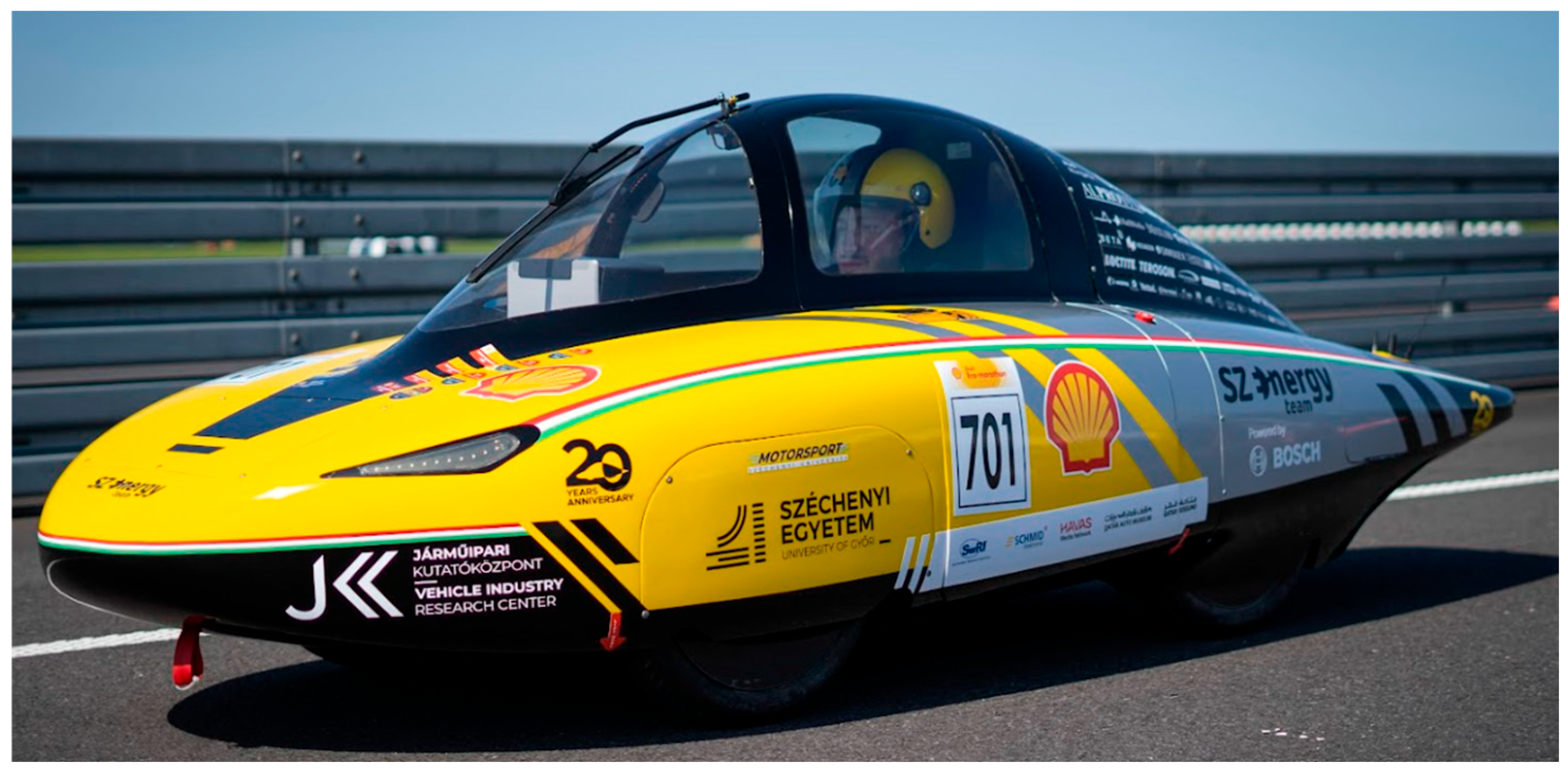 1]. The Shell Eco-marathon (SEM) is a prestigious international competition held annually, offering teams from educational institutions the opportunity to showcase innovative, energy-efficient vehicle solutions. During the event, vehicles must complete approximately 16 km within 40 min. The objective is to achieve a valid run in the shortest possible time while consuming the least amount of energy. The investigated vehicle is a Battery Electric Urban Concept vehicle (
