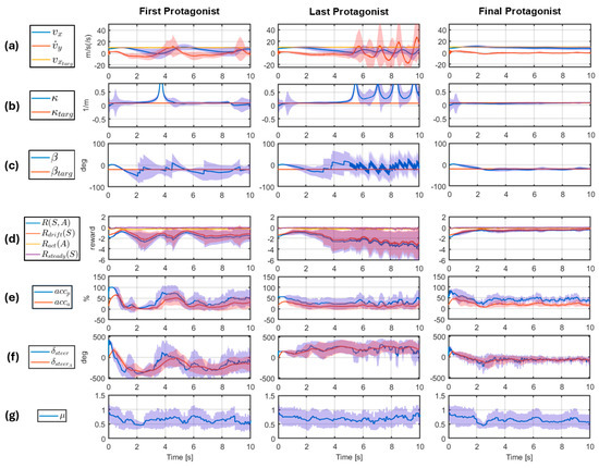 In Figure 2, the evaluation of first, last, and final protagonists on a 10 s long episode simulation is shown.