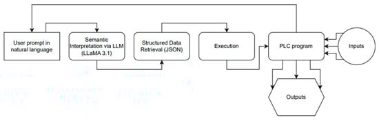 In traditional PLC systems, modifying control logic—even for minor changes—may require recompiling the program and reloading the executable onto the controller. Depending on the extent of the changes, this process may also result in system downtime. In contrast, our architecture separates control logic from the PLC program by externalizing rule definition. The PLC handles peripheral device communication only, while all logic-related tasks are delegated to a rule-based controller. This design allows rule modifications to be performed in natural language [16]. The only adjustment required is to the input prompt provided to the controller—eliminating the need for PLC code modification. This feature is particularly useful in industrial environments, where on-demand changes to equipment behavior are frequently requested by operators, even when the system is functioning reliably. Only communication needs to be written within the PLC program, which covers all peripherals. When defining rules in natural language, only the prompt of the currently running program needs to be adjusted according to requirements. In a real industrial environment, such modifications frequently occur even in well-functioning and reliable equipment at the operator’s request.