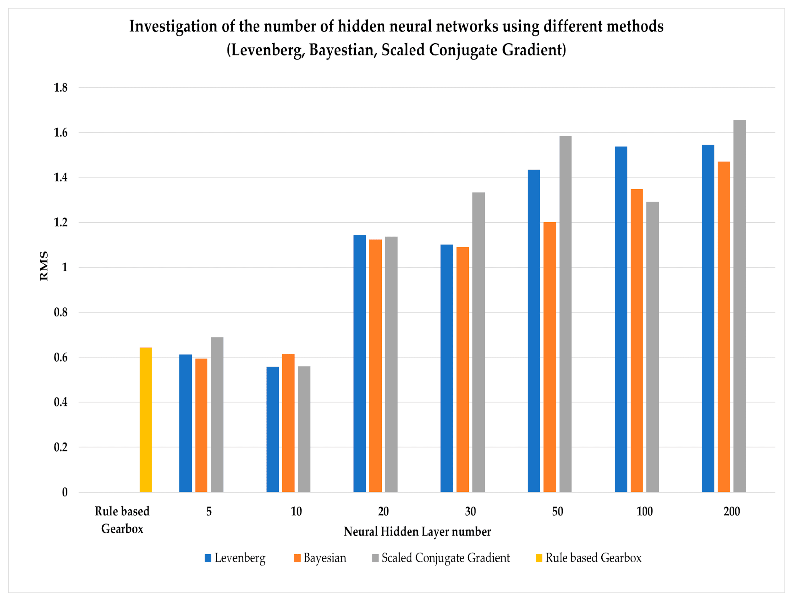 Based on the results, the Bayesian method is the most suitable method for solving the problem among the three methods presented. When defining the hidden neural layers, it best imitates the operation of the vehicle transmission using 10 hidden layer neurons.