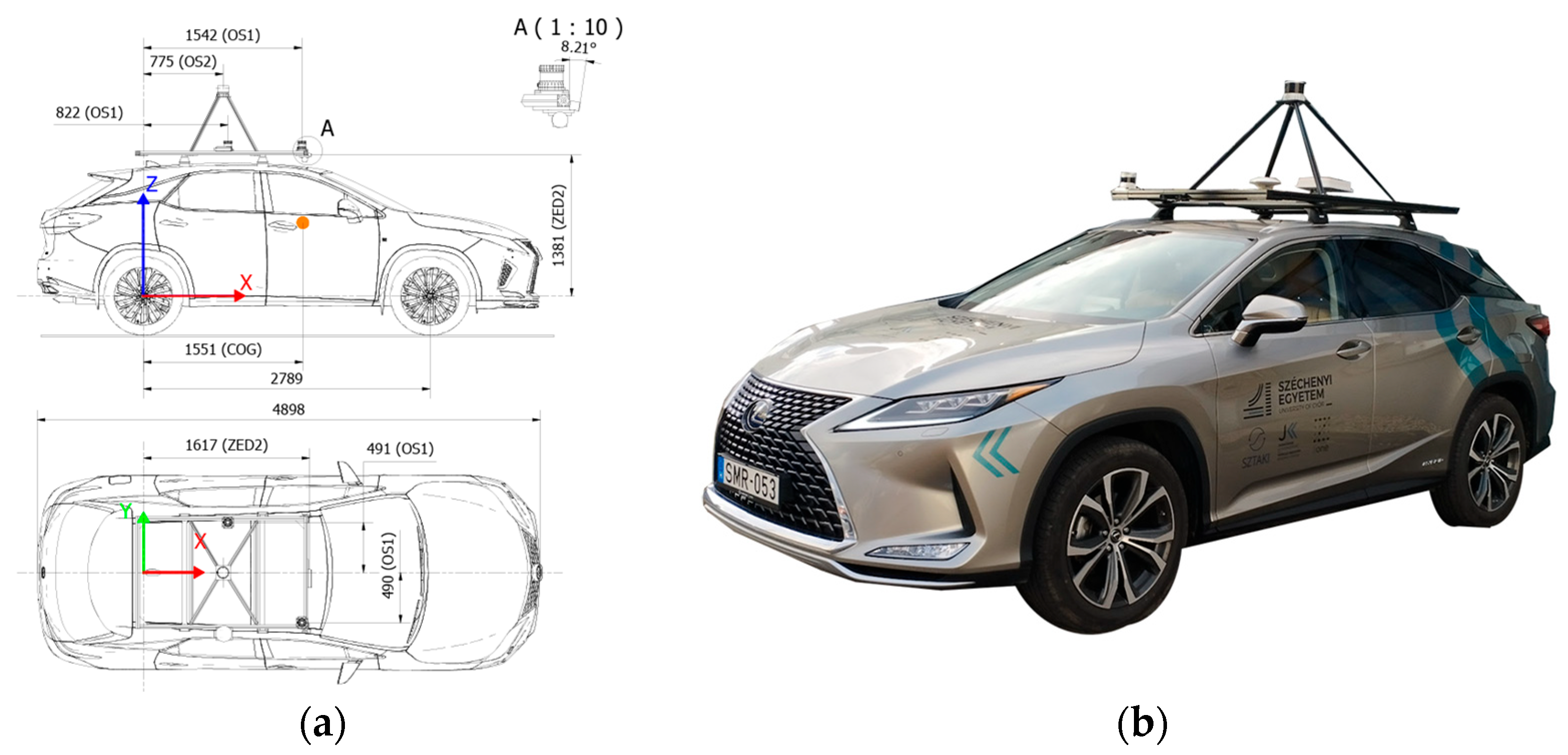 The test vehicle is a Lexus RX450 vehicle, specially rebuilt for testing purposes (see