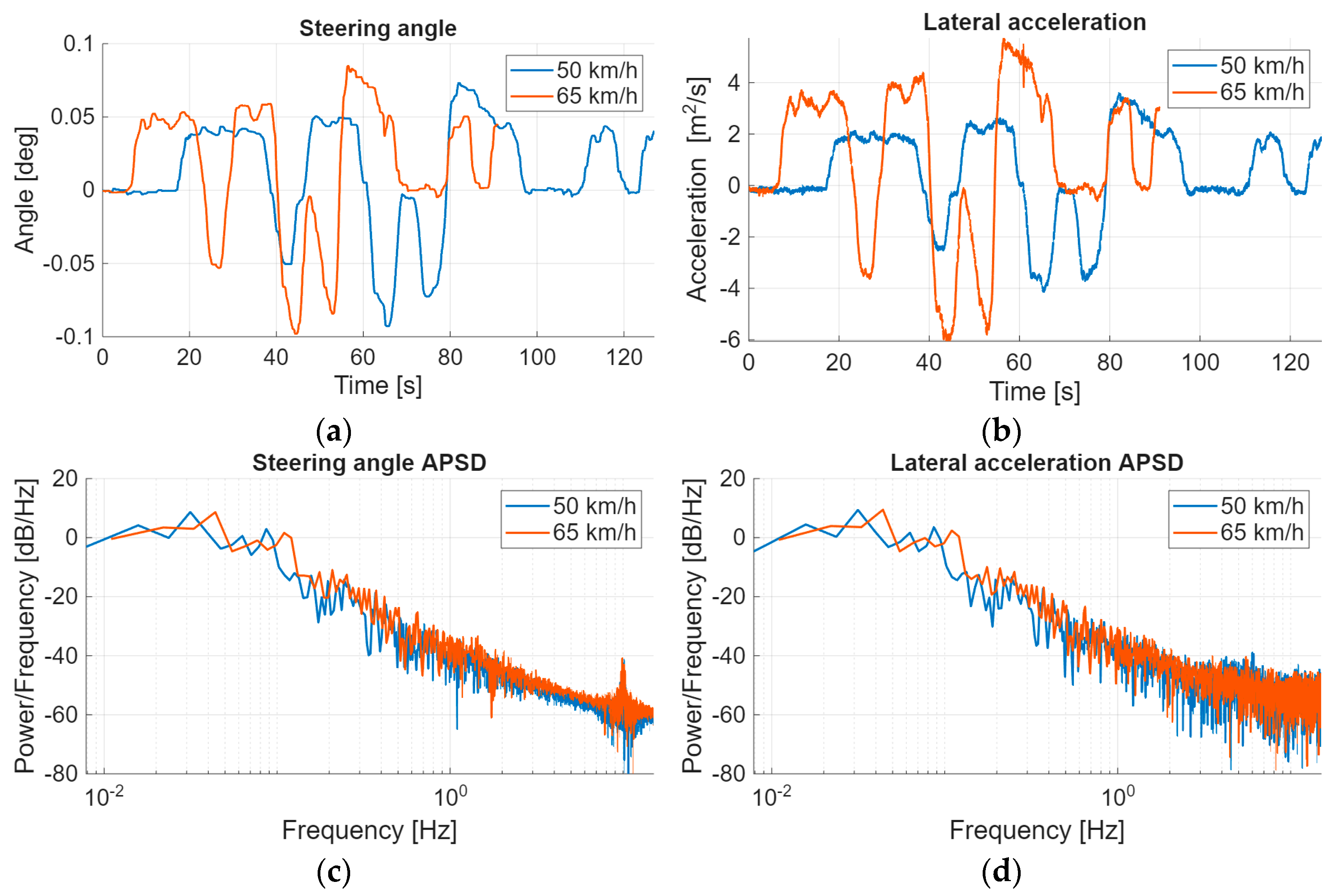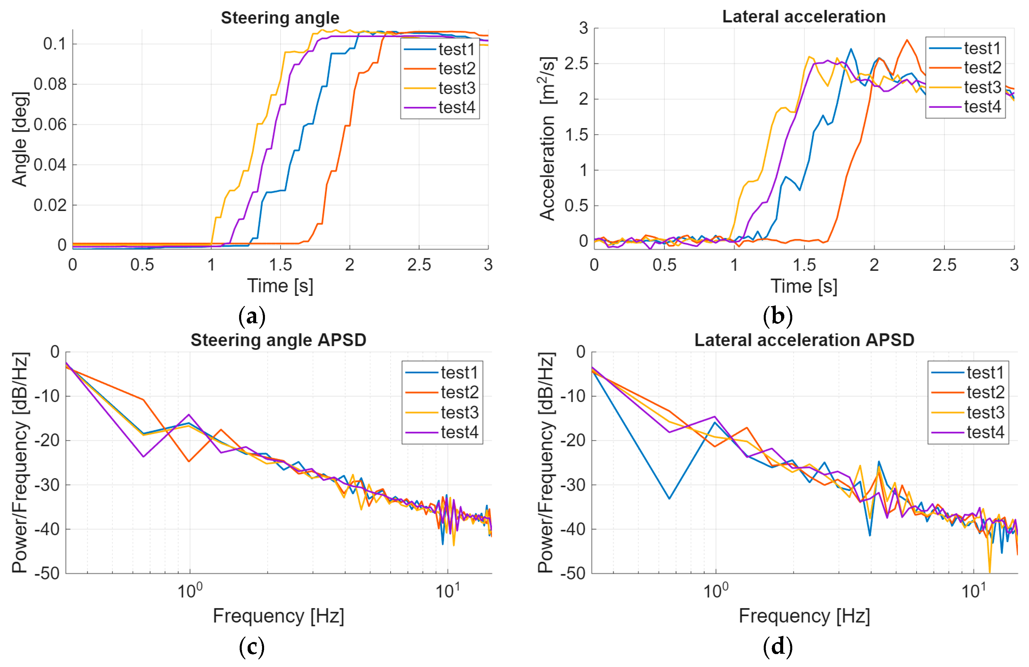 vector. The APSDs are interpreted at normalized values for better comparability. The sampling frequency for all measurements is 30 Hz. Only the step response tests were performed in autonomous mode; for all other measurements, the vehicle was driven by a driver.