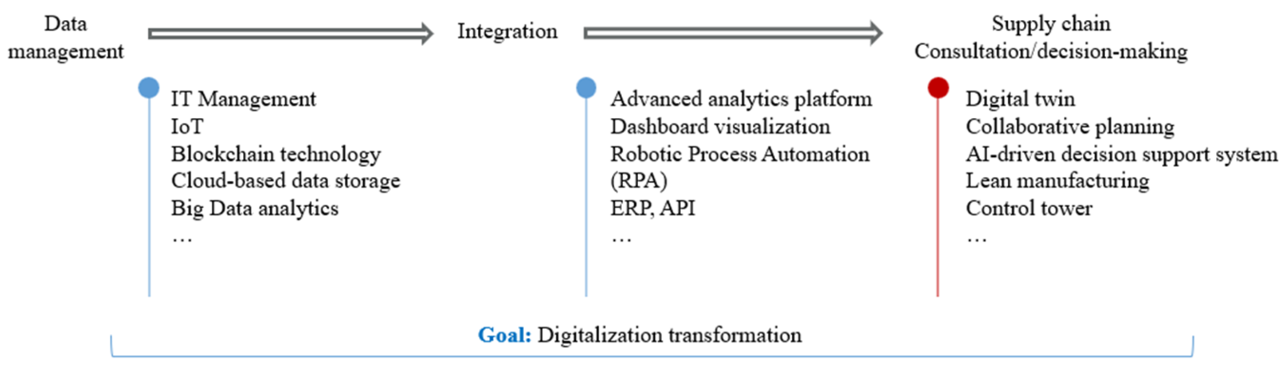 3]. The author built up a digitalization transformation model that was generalized based on empirical cases and a literature review of practices applied to SCM and operations.