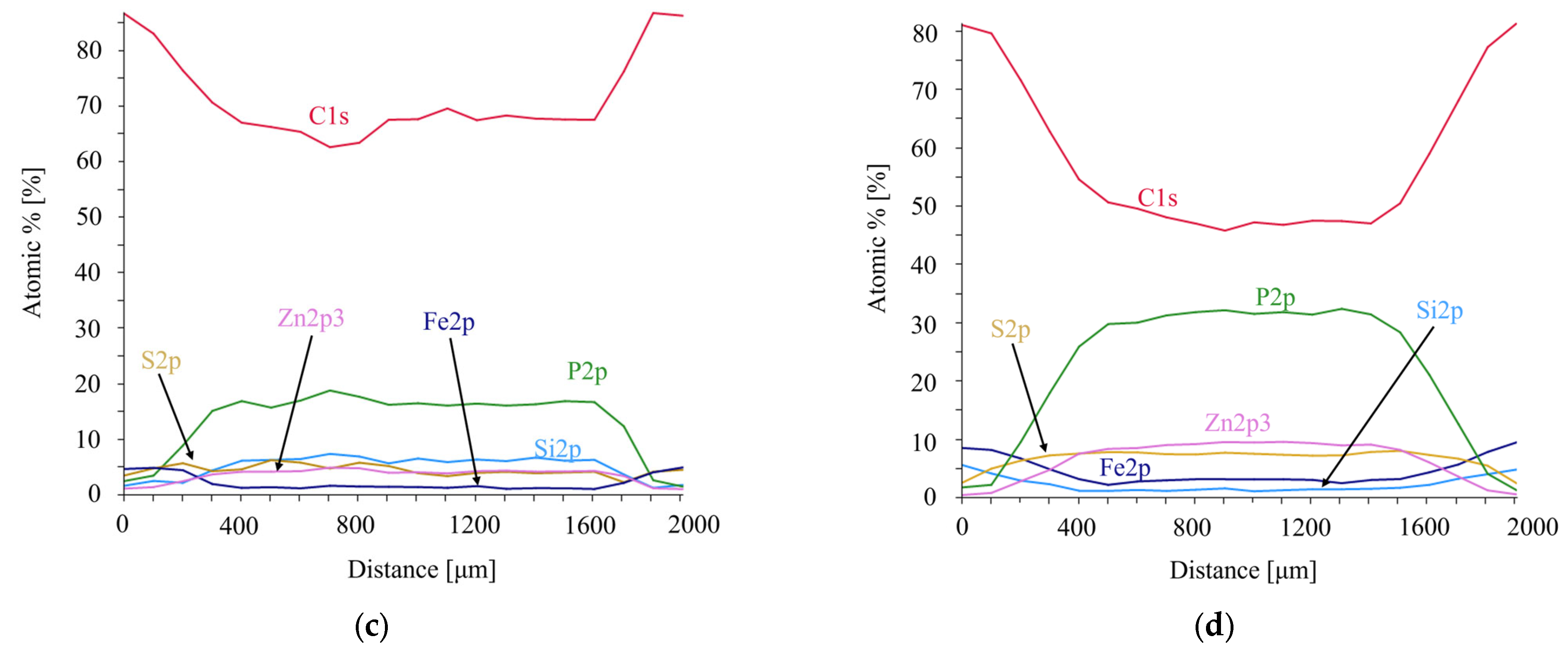 - Akbari, S.; Kovač, J.; Kalin, M. Effect of ZDDP concentration on the thermal film formation on steel, hydrogenated non-doped and Si-doped DLC. Appl. Surf. Sci. 2016, 383, 191–199. [Google Scholar] [CrossRef]
