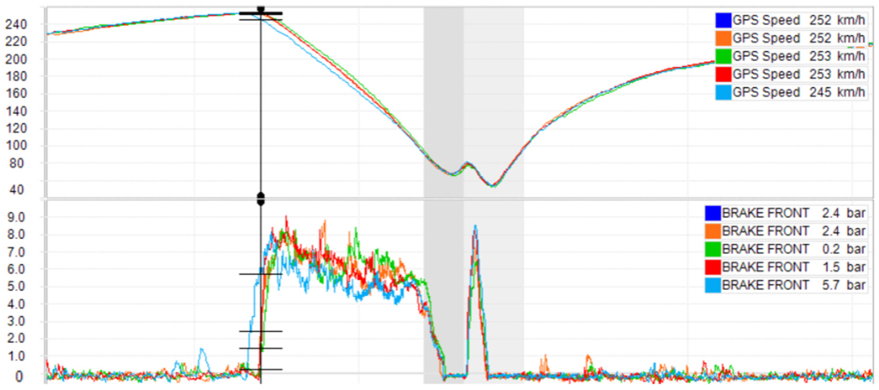 Table 3). This lap was also associated with the latest initiation of braking and the steepest gradient in brake pressure increase (