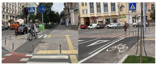 Key design principles for cycling infrastructure are provided in Slovakia’s TP 085:2020 guideline, with an emphasis on safety, continuity, and integration with urban mobility. Depending on the volume and speed of motorized traffic, it suggests different types of infrastructure, like bike lanes, shared paths, or mixed traffic. The need for a standardized application is highlighted by the fact that, although the guideline is in line with European practices, its implementation differs locally [,].