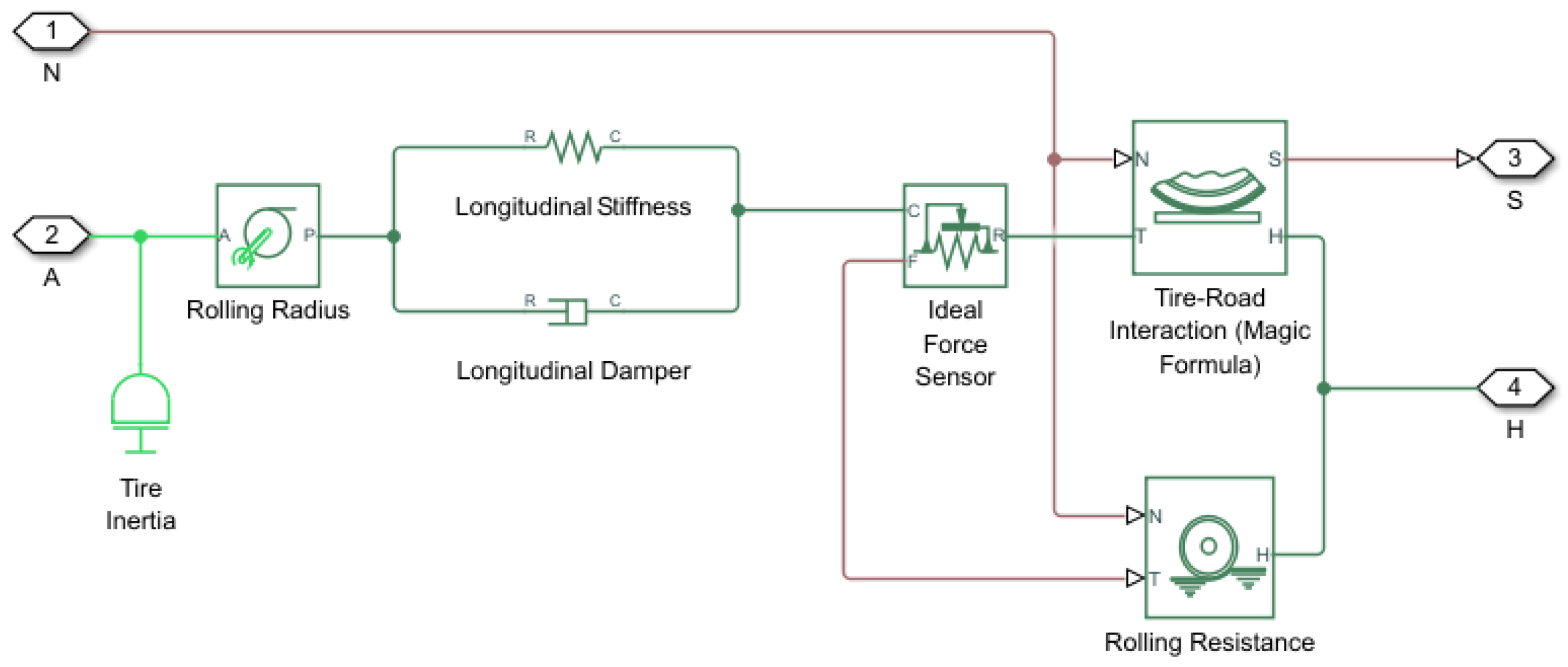 Figure 3. Component model of the wheels and tires [8].