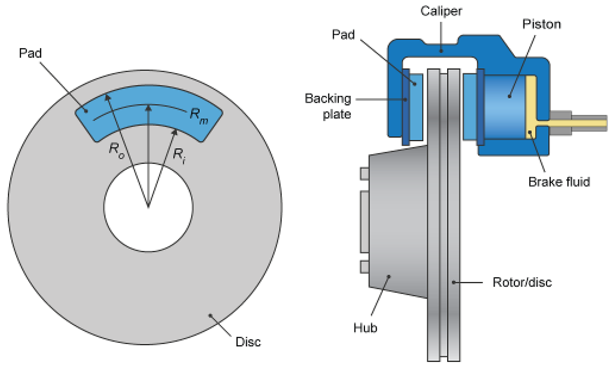 Figure 4. Disk brake working principle with main properties [10].
