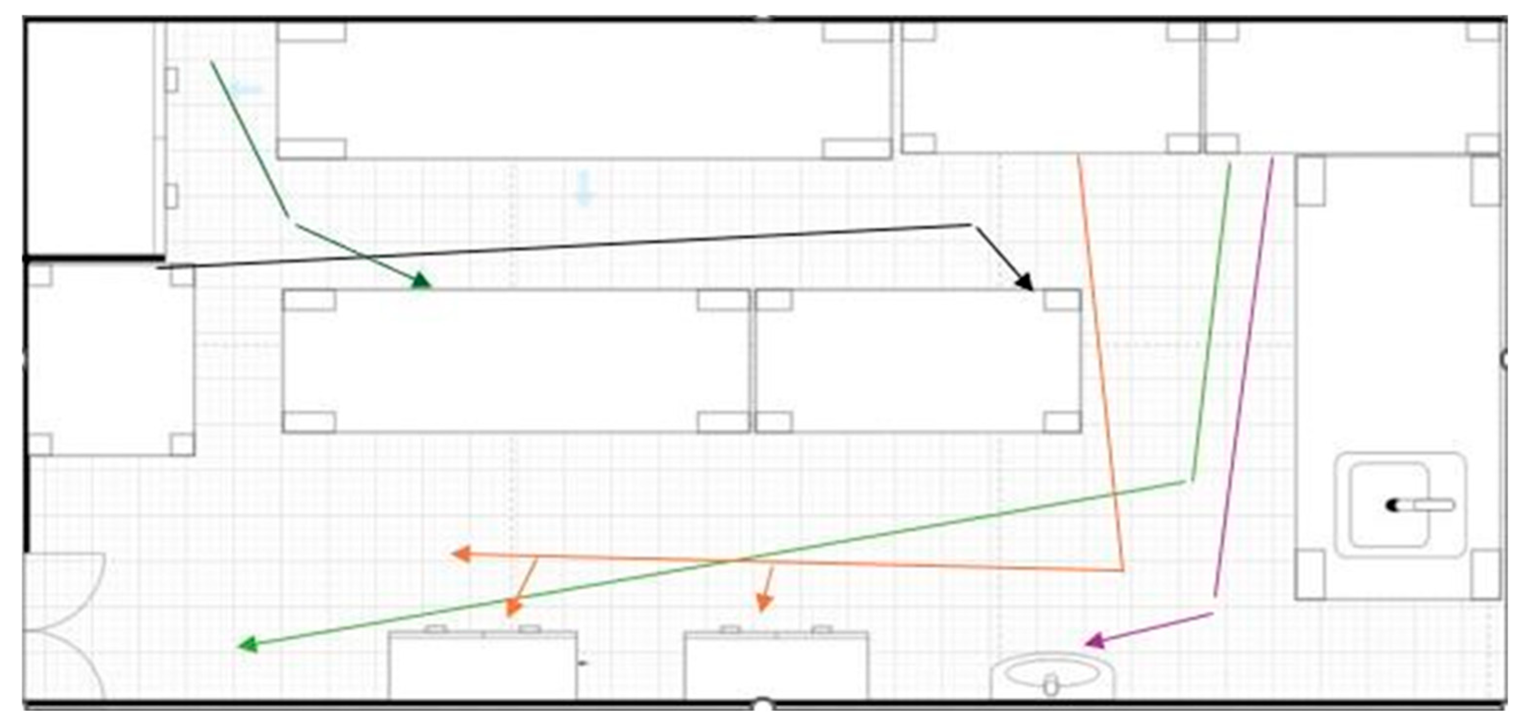 - The necessary materials were placed on the table for easy reach, and the less used materials were placed on the floor and the one that are to be removed from the lab were placed outside.
