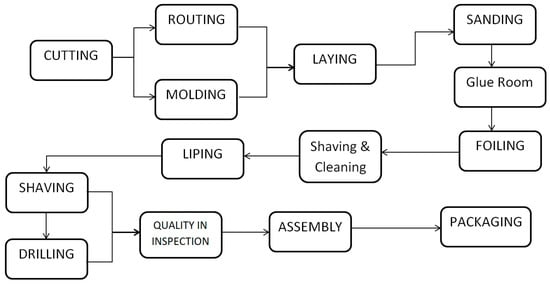 The organization under study is engaged in the production of a wide range of modular furniture, including kitchen and bedroom units. Plywood is the primary raw material used in the manufacturing process. The plywood sheets are initially cut into various sizes and sent for routing, which is performed using four CNC machines at Space Wood. After routing, the panels move to the sanding and cleaning section, where they are treated with sandpaper and cleaned to prepare for further processing. Next, the panels are transferred to the gluing section, where adhesive is applied in preparation for foil application using a specialized foiling machine. Once this step is completed, quality control checks are carried out to ensure that the panels meet the required standards. The final stage involves the assembly of the panels to produce the finished furniture products.