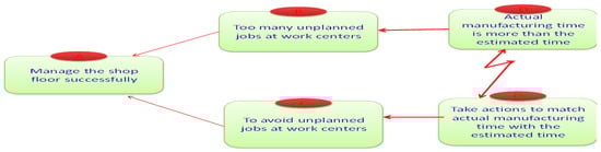 Figure 5 illustrates the evaporating cloud for this UDE. The most common distribution action is “actual manufacturing time is more than the estimated time” and the suggested opposite action is “take action to match actual manufacturing time with the estimated time.” The required necessary condition is shown in Figure 5, while the common organization objective is “Manage Shop Floor Successfully”.