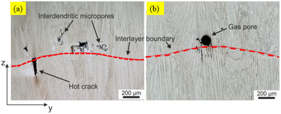 (a) The micropores, hot crack, (b) gas porosity in WAAM of IN718 [22].