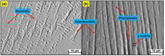 SEM of IN625 alloy: (a) as-deposited; (b) solution annealed [19].