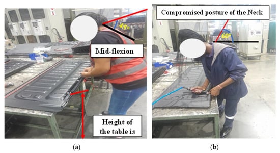 Observing operators assemble tailgates at the workstation was how information was acquired in this section. Figure 2 below shows the employees’ body posture while working. Images were collected to monitor the workers’ postures while they were working.