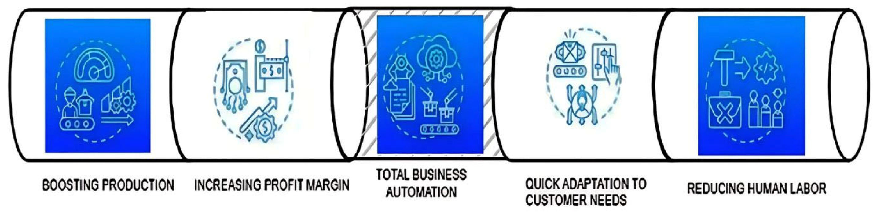 | Artificial Intelligence (AI) | Automates decision-making, predictive maintenance, process optimization | Manufacturing, supply chain management, robotics |