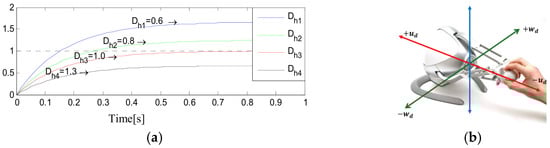 (a) Evolution of for different damping values con . (b) Linear and angular velocities assignment.