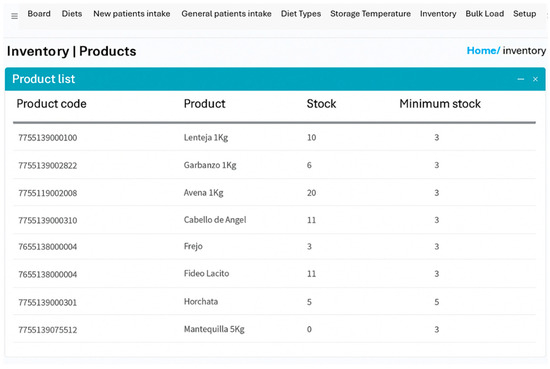Inventory management features allow administrators to maintain accurate stock records, identify high-consumption products, and plan timely replenishment, preventing operational disruptions. These functionalities align with the operational improvements proposed in [15,17], where IoT-based data collection supports predictive resource planning and waste reduction.