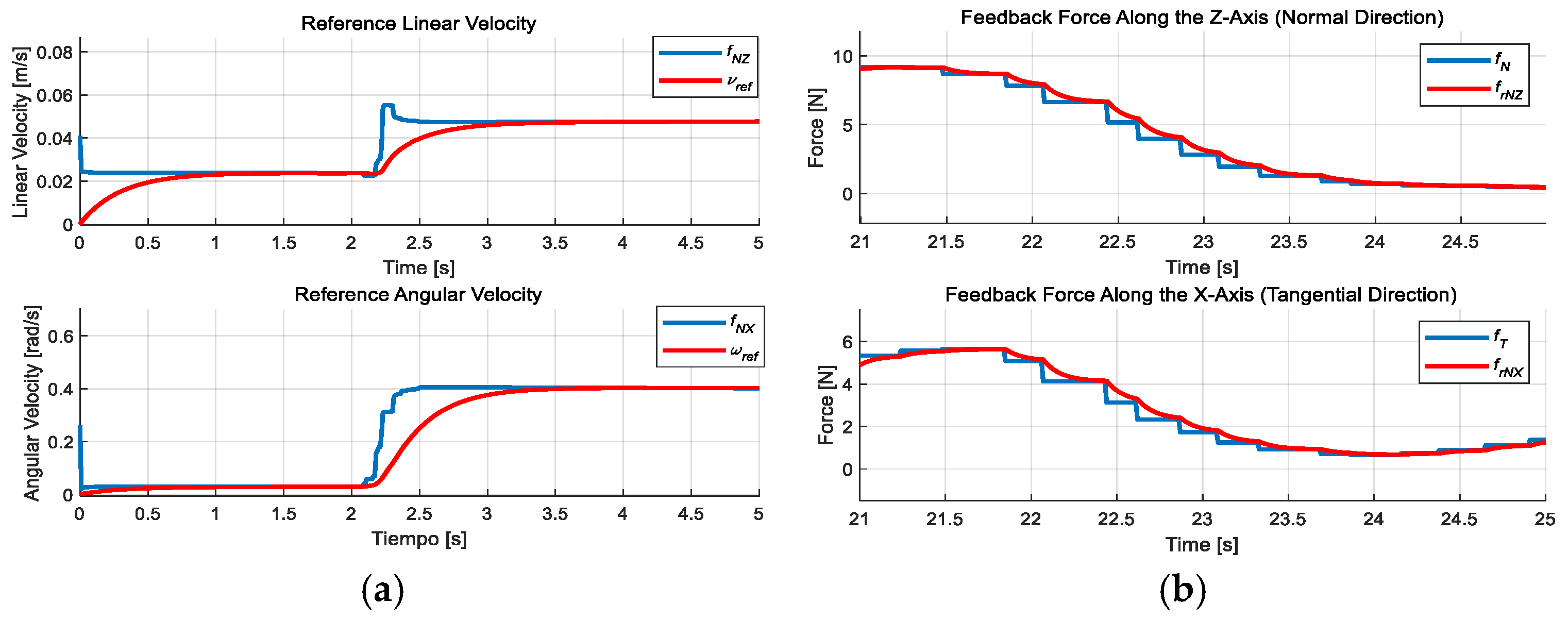 Figure 5. (a) Reference velocity; (b) feedback force.