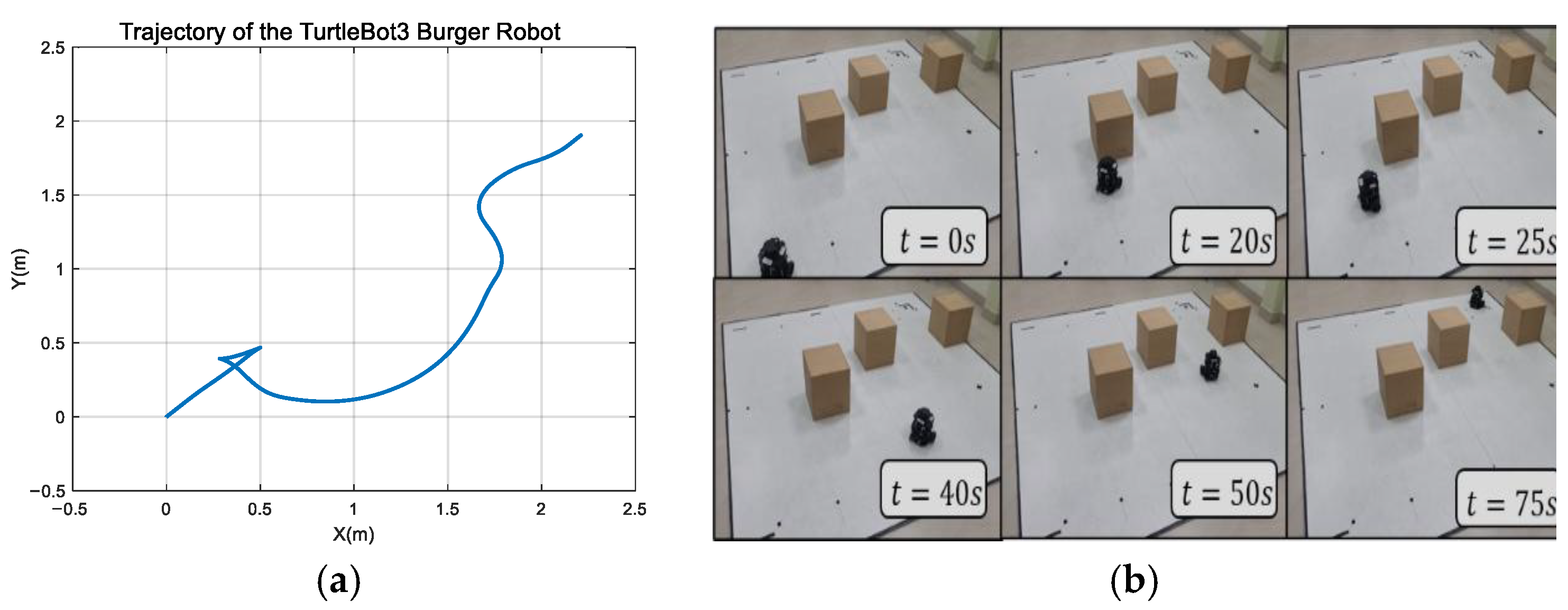 Figure 6. (a) Tracking trajectory; (b) movement sequence of the robot in a congested environment.
