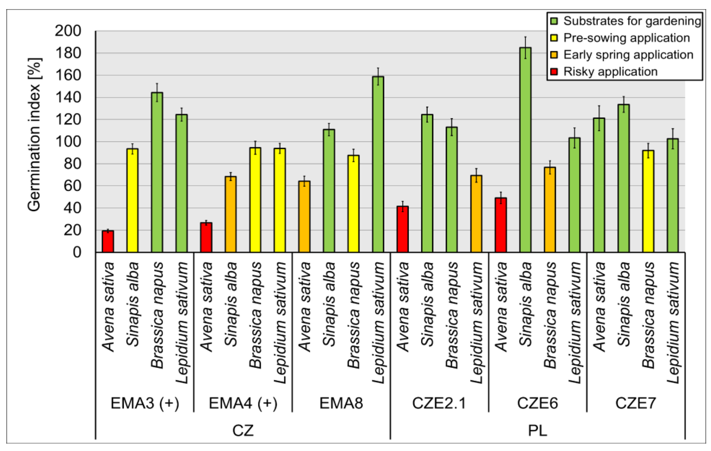 - OECD. Test No. 208: Terrestrial Plant Test: Seedling Emergence and Seedling Growth Test, OECD Guidelines for the Testing of Chemicals, Section 2; OECD Publishing: Paris, France, 2006. [Google Scholar]