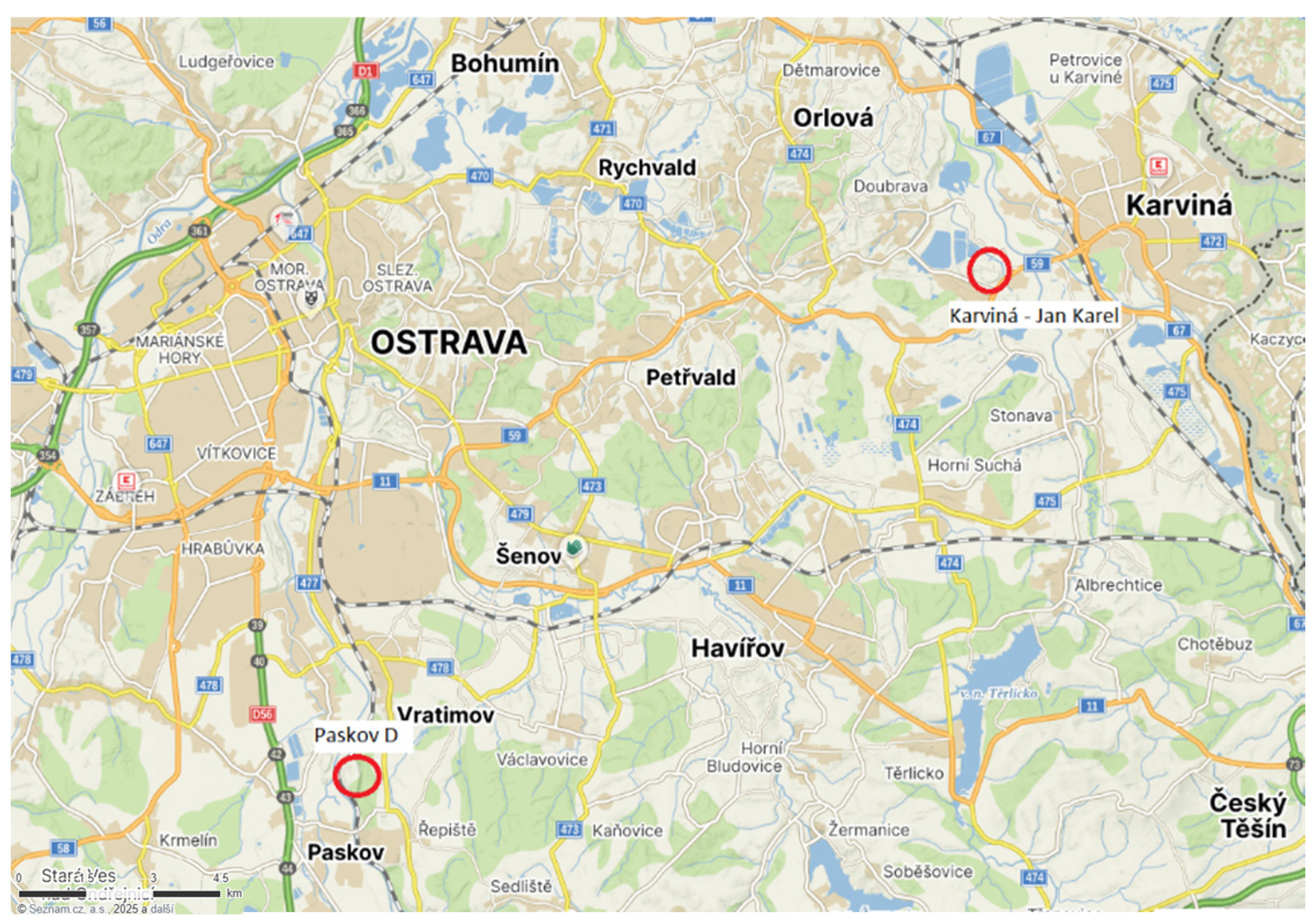 - Mapy.cz. Available online: https://mapy.com/en/zakladni?x=18.4679454&y=49.8288349&z=12 (accessed on 27 May 2025).