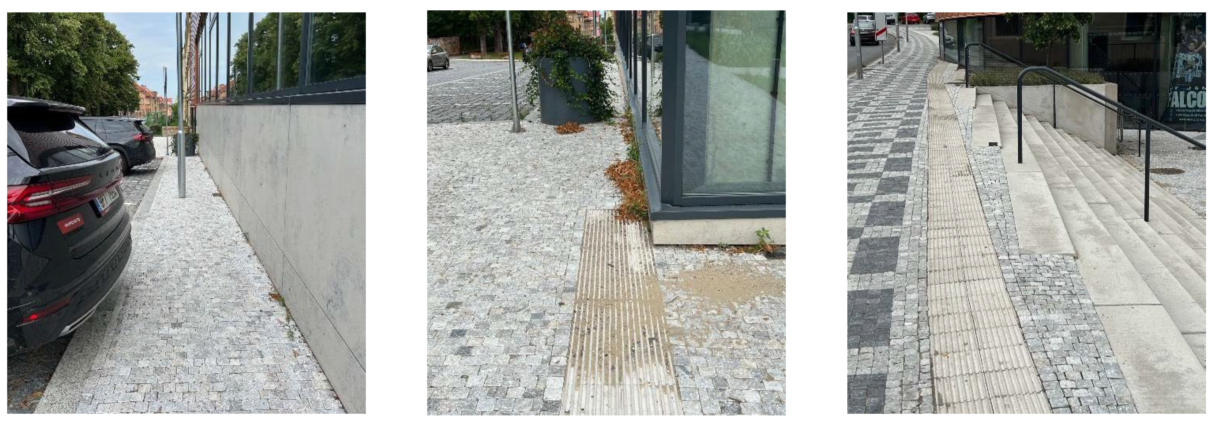 4], include all squares, streets, marketplaces, sidewalks, public green areas, parks, and other spaces accessible to everyone without restriction, regardless of ownership. These spaces must be designed to accommodate diverse needs and enable the independent and safe movement of all users. Although the Czech Republic has established legislative and regulatory frameworks to address these requirements, challenges persist in their consistent and effective implementation within the built environment.