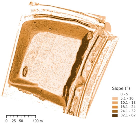 The highest sulfur content was recorded in the central part of the northern slope. (85–250 mg.kg−1) [17]. This is due to spoil rocks containing sulfides. However, the high sulfur content does not result in low soil pH, likely due to elevated Ca levels from construction debris. No significant water erosion was observed on the northern slope. The vegetation is herbaceous with occasional fruit-bearing shrubs.